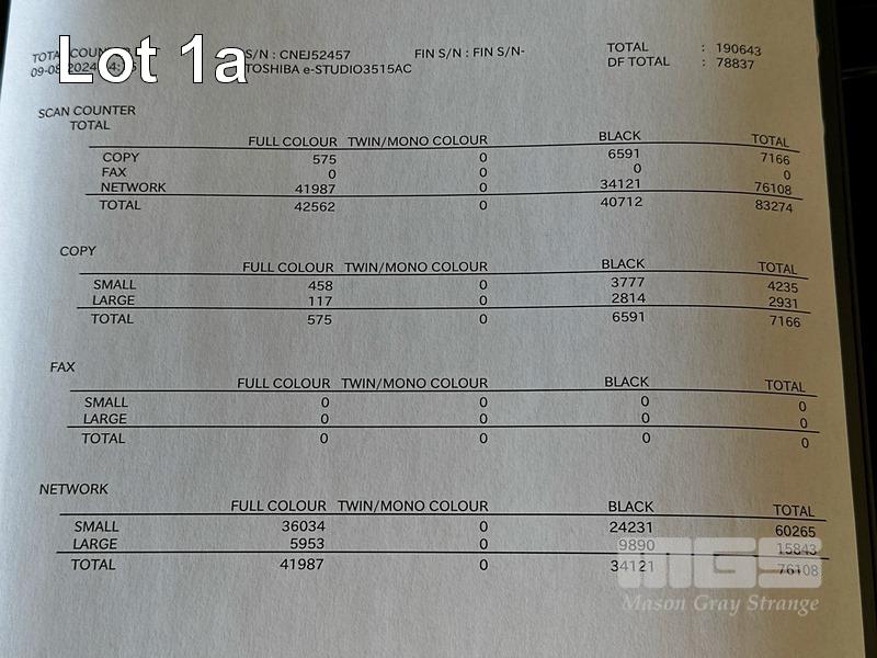 PHOTOCOPIER, TOSHIBA e-STUDIO 3515AC COLOUR DIGITAL, ADF, PRINTER USB & NETWORK PORTS, 55,653 COLOUR & 134,992 B&W COPIES SHOWING (TEST PAGE ATTACHED) WITH SPARE WASTE TONER BOTTLES S/N:CNEJ52457