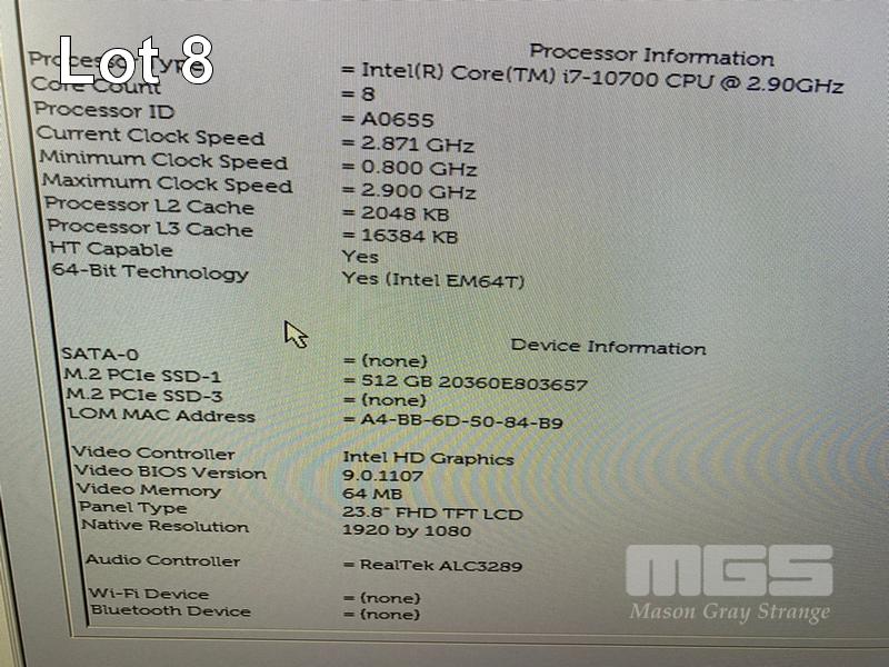 ALL-IN-ONE PC, DELL OPTIPLEX 7480, CORE i7 10700 (10TH GEN) @ 2.9GHz, 8GB DDR4 RAM, 512GB NVMe M.2 SSD, INBUILT 23.8" FHD WIDESCREEN (1920x1080), INTEL HD VIDEO, WEBCAM, 5 x USB, 1 x USB-C, WINDOWS 11 HOME INSTALLED, KEYBOARD & MOUSE S/N:DB4LX53