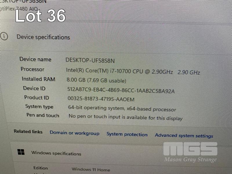 ALL-IN-ONE PC, DELL OPTIPLEX 7480, CORE i7 10700 (10TH GEN) @ 2.9GHz, 8GB DDR4 RAM, 512GB NVMe M.2 SSD, INBUILT 23.8" FHD WIDESCREEN (1920x1080), INTEL HD VIDEO, WEBCAM, 5 x USB, 1 x USB-C, WINDOWS 11 HOME INSTALLED, KEYBOARD & MOUSE S/N:DB1CX53