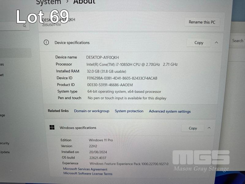 LAPTOP, LENOVO THINKPAD P15 GEN 1 MOBILE WORKSTATION, TYPE 20SU, CORE i7 10850H (10TH GEN) @ 2.7GHz, 32GB DDR4 RAM, 512GB NVMe M.2 SSD, 15.6" WIDESCREEN (1920x1080), 4GB NVIDIA QUADRO T2000 VIDEO, Wi-Fi, BLUETOOTH, WINDOWS 11 PRO INSTALLED & POWER SUPPLY S/N:PF1SR4FY