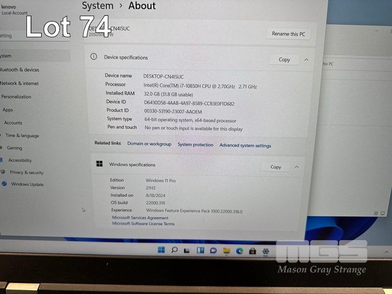 LAPTOP, LENOVO THINKPAD P15 GEN 1 MOBILE WORKSTATION, TYPE 20SU, CORE i7 10850H (10TH GEN) @ 2.7GHz, 32GB DDR4 RAM, 500GB NVMe M.2 SSD, 15.6" WIDESCREEN (1920x1080), 4GB NVIDIA QUADRO T2000 VIDEO, Wi-Fi, BLUETOOTH, WINDOWS 11 PRO INSTALLED & POWER SUPPLY (NOTE: "G" KEY LOOSE) S/N:PF1SRKL4