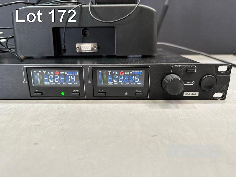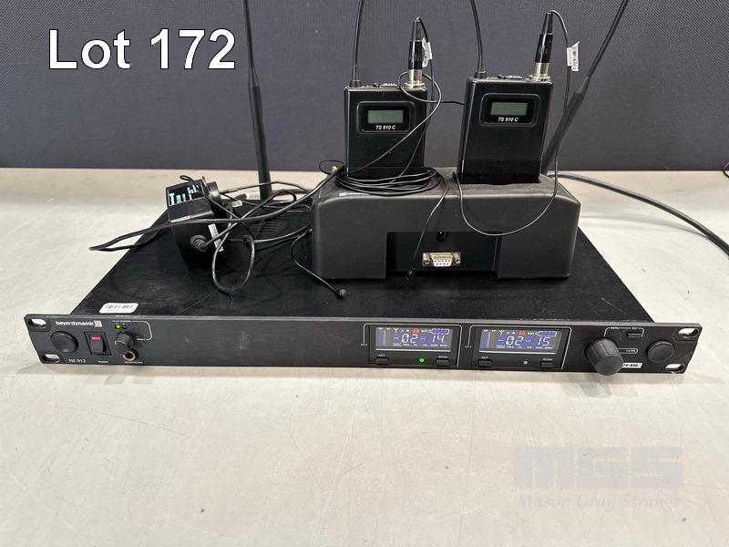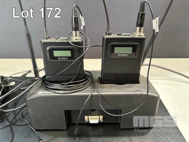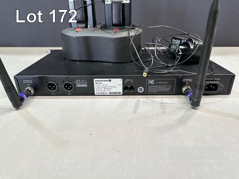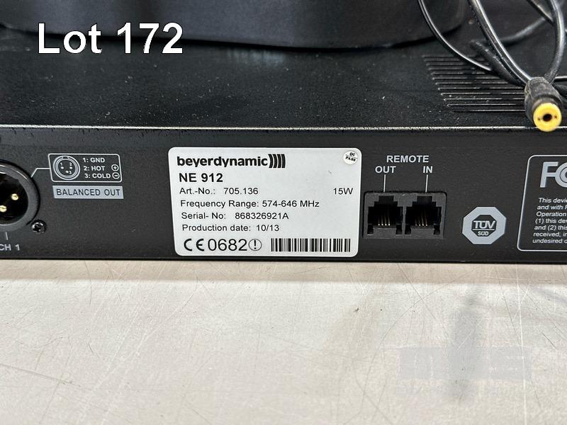 BEYERDYNAMIC NE 912 WIRELESS AUDIO RECEIVER, 574-646 WITH 2 x BEYERDYNAMIC TS 910 C POCKET TRANSMITTERS, 2 x LAPEL MICROPHONES, 1 x CHARGING UNIT & 1 x POWER SUPPLY S/N:868326921A