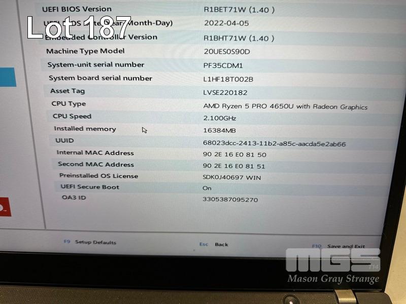 LAPTOP, LENOVO THINKPAD T14 Gen1, TYPE 20UE, AMD RYZEN 5 PRO 4650U @ 2.1GHz, 16GB DDR4 RAM, 512GB NVMe M.2 SSD, 14" TOUCHSCREEN (1920x1080), Wi-Fi, BLUETOOTH, WINDOWS 11 PRO INSTALLED (NO USB-C POWER SUPPLY) (NOTE: TOUCHAPD FAULT, "E" KEY LOOSE) S/N:PF35CDM1
