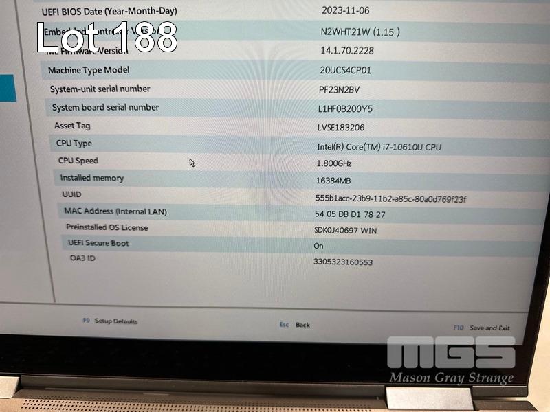 LAPTOP, LENOVO THINKPAD X1 YOGA (5TH GEN), TYPE 20UC, CORE i7 10610U (10TH GEN) @ 1.8GHz, 16GB DDR4 RAM, 512GB NVMe SSD, 14" TOUCHSCREEN (1920x1080), INTEL HD VIDEO, Wi-Fi, BLUETOOTH, STYLUS, WINDOWS 11 PRO INSTALLED (NO USB-C POWER SUPPLY) (NOTE: MARKS ON SCREEN) S/N:PF23N2BV