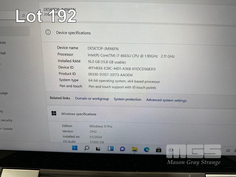 LAPTOP, LENOVO THINKPAD X1 YOGA (4TH GEN), TYPE 20QG, CORE i7 8665U (8TH GEN) @ 1.9GHz, 16GB DDR4 RAM, 512GB NVMe SSD, 14" TOUCHSCREEN (1920x1080), INTEL HD VIDEO, Wi-Fi, BLUETOOTH, WINDOWS 11 PRO INSTALLED (NO USB-C POWER SUPPLY) (NOTE: NO STYLUS, MINOR DAMAGE TO CASING, MARKS ON SCREEN) S/N:PF26JP03