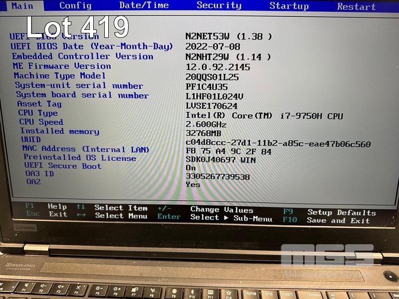 LAPTOP, LENOVO THINKPAD P53 MOBILE WORKSTATION, TYPE 20QQ, CORE i7 9750H (9TH GEN) @ 2.6GHz, 32GB DDR4 RAM, 512GB NVMe M.2 SSD, 525GB SSD, 15.6" WIDESCREEN (1920x1080), 4GB NVIDIA QUADRO T2000 VIDEO, Wi-Fi, BLUETOOTH, WINDOWS 11 PRO INSTALLED & POWER SUPPLY (NOTE: MARKS ON SCREEN) S/N:PF1C4U35