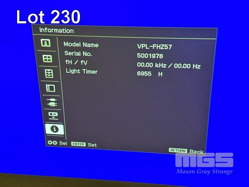 LASER PROJECTOR, SONY VPL-FHZ57 WUXGA 3LCD, 4,100 LUMENS, 6,955 HOURS SHOWING WITH REMOTE S/N:5001978