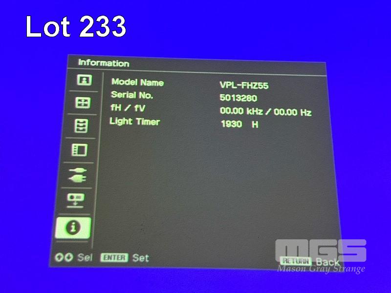 LASER PROJECTOR, SONY VPL-FHZ55 WUXGA 3LCD, 4,000 LUMENS, 1,930 HOURS SHOWING WITH REMOTE S/N:5013280