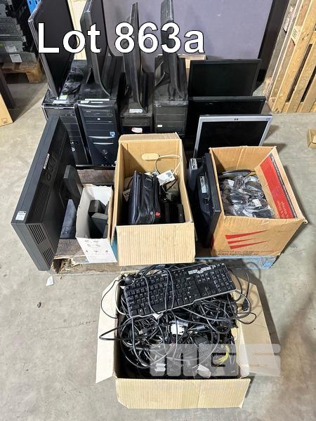 1 x PALLET LOT ASST COMPUTERS, MONITORS, CABLES, HP (NEW) MICE ETC