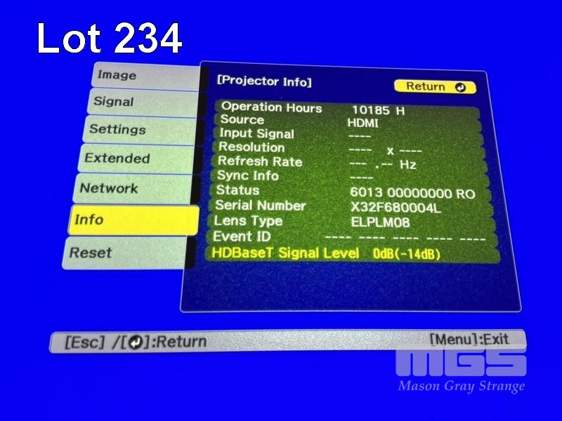 LASER PROJECTOR, EPSON EB-L1300U 3LCD, 8,000 LUMENS, 10,185 HOURS SHOWING WITH REMOTE S/N:X32F680004L