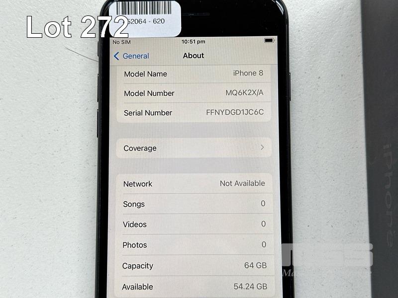 APPLE iPHONE 8, 64GB, SPACE GREY, MODEL MQ6K2X/A, BATTERY HEALTH 99% (NO CABLE, NO CHARGER) S/N:FFNYDGD1JC6C