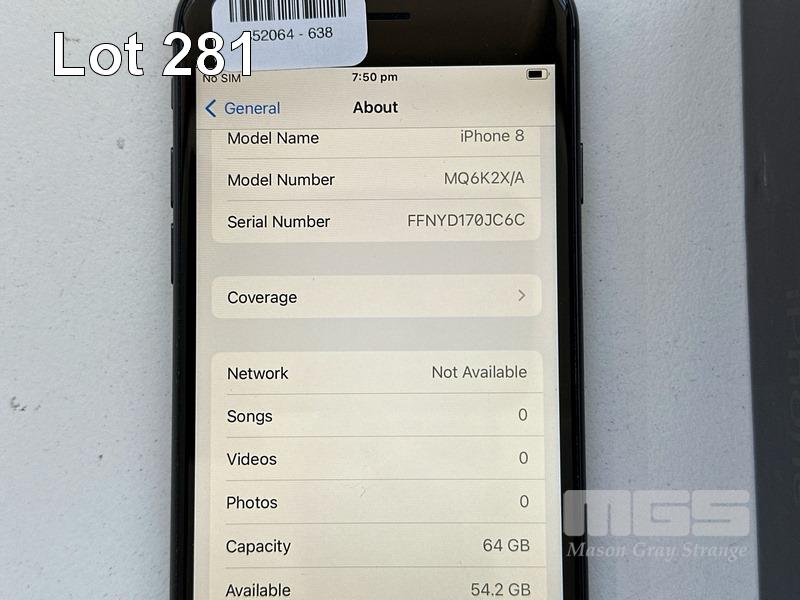 APPLE iPHONE 8, 64GB, SPACE GREY, MODEL MQ6K2X/A, BATTERY HEALTH 93% (NO CABLE, NO CHARGER) S/N:FFNYD170JC6C