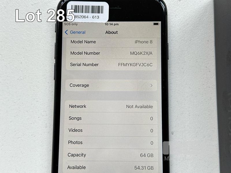 APPLE iPHONE 8, 64GB, SPACE GREY, MODEL MQ6K2X/A, BATTERY HEALTH 91% (NO CABLE, NO CHARGER) S/N:FFMYKGFVJC6C