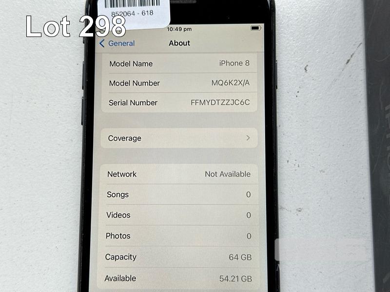 APPLE iPHONE 8, 64GB, SPACE GREY, MODEL MQ6K2X/A, BATTERY HEALTH 87% (NO CABLE, NO CHARGER) S/N:FFMYDTZZJC6C