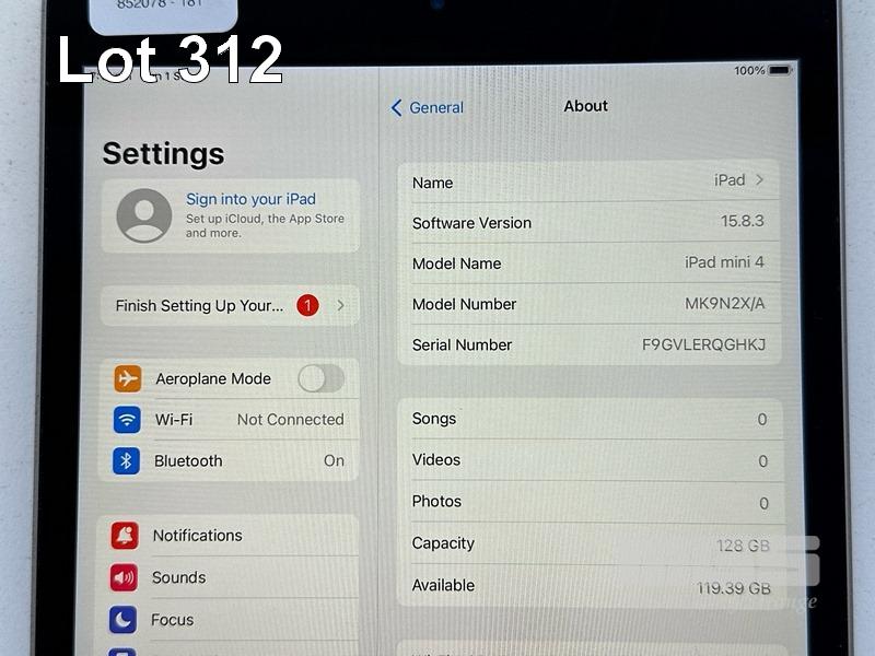 APPLE iPAD MINI 4TH GEN, 128GB, Wi-Fi, SPACE GREY, MODEL MK9N2X/A, A1538 WITH COVER (NO CABLE, NO CHARGER) S/N:F9GVLERQGHKJ