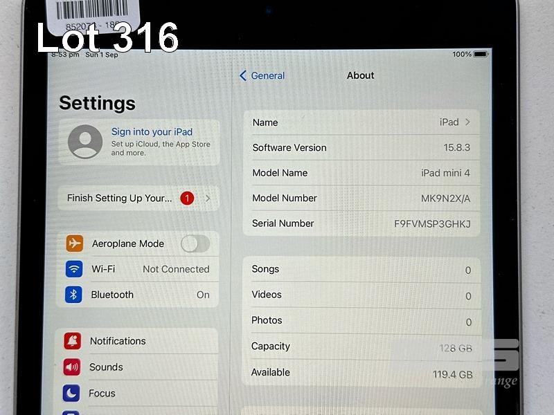 APPLE iPAD MINI 4TH GEN, 128GB, Wi-Fi, SPACE GREY, MODEL MK9N2X/A, A1538 WITH COVER (NO CABLE, NO CHARGER) S/N:F9FVMSP3GHKJ