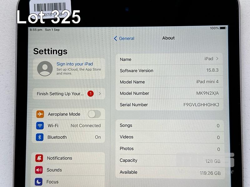 APPLE iPAD MINI 4TH GEN, 128GB, Wi-Fi, SPACE GREY, MODEL MK9N2X/A, A1538 (NO CABLE, NO CHARGER) S/N:F9GVLGHHGHKJ