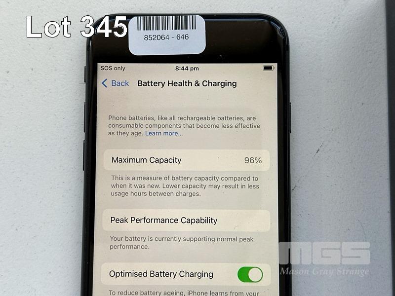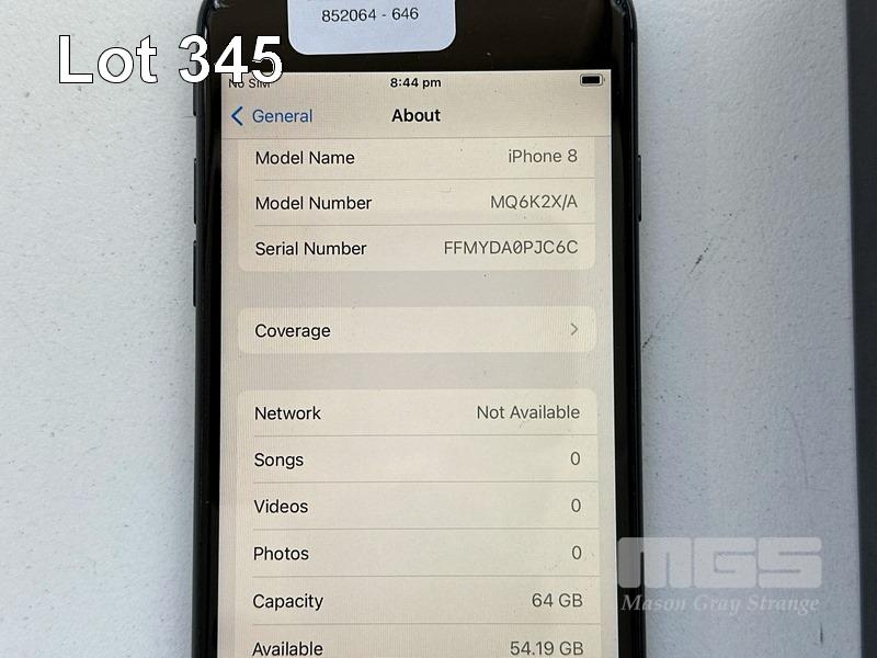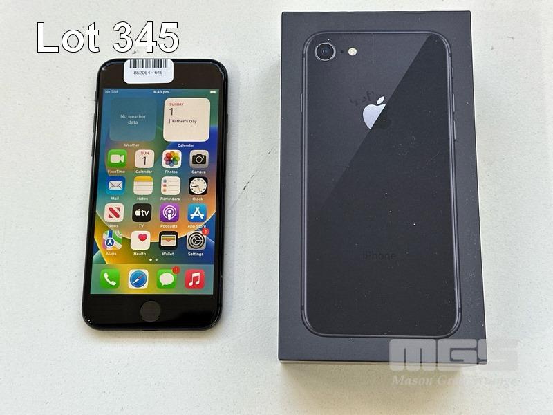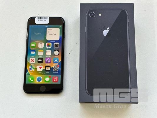 APPLE iPHONE 8, 64GB, SPACE GREY, MODEL MQ6K2X/A, BATTERY HEALTH 96% (NO CABLE, NO CHARGER) (NOTE: DAMAGE TO CASING ON CORNERS & BACK) S/N:FFMYDA0PJC6C