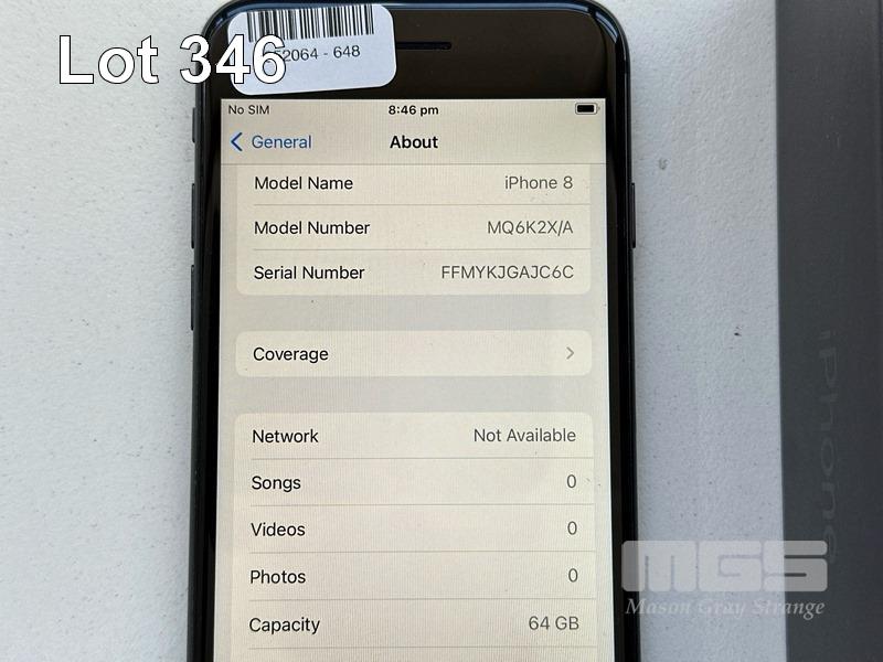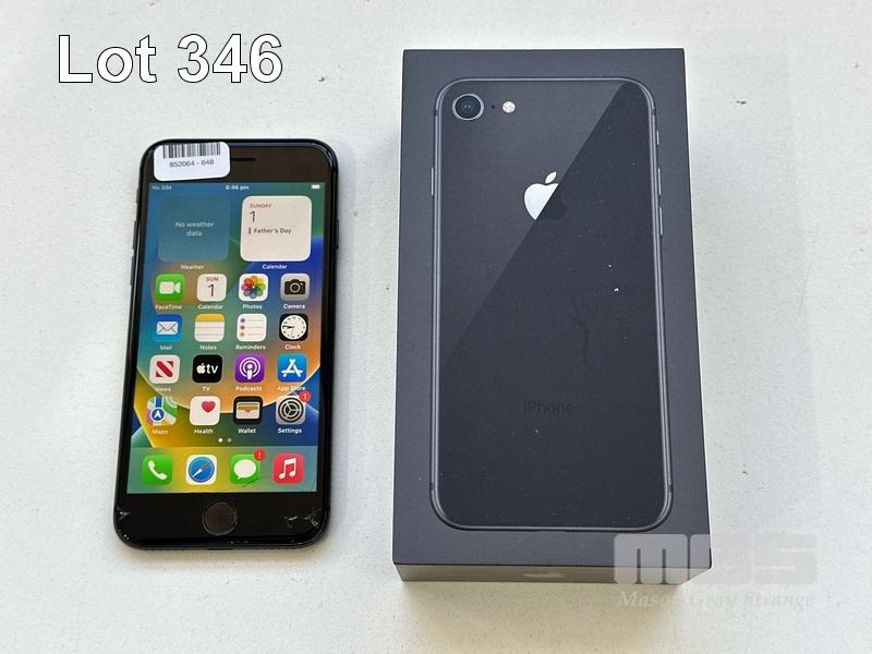 APPLE iPHONE 8, 64GB, SPACE GREY, MODEL MQ6K2X/A, BATTERY HEALTH 91% (NO CABLE, NO CHARGER) (NOTE: DAMAGED SCREEN) S/N:FFMYKJGAJC6C