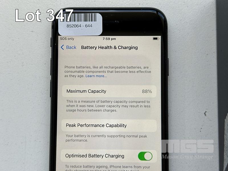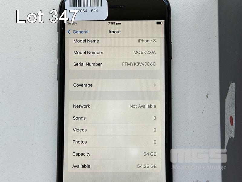 APPLE iPHONE 8, 64GB, SPACE GREY, MODEL MQ6K2X/A, BATTERY HEALTH 88% (NO CABLE, NO CHARGER) (NOTE: SPOT ON SCREEN) S/N:FFMYKJV4JC6C