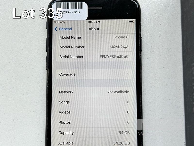 APPLE iPHONE 8, 64GB, SPACE GREY, MODEL MQ6K2X/A, BATTERY HEALTH 84% (NO CABLE, NO CHARGER) (NOTE: MINOR SCRATCHES ON SCREEN) S/N:FFMYFSG6JC6C