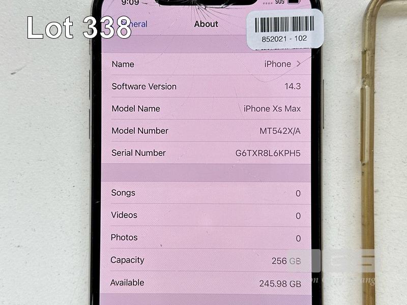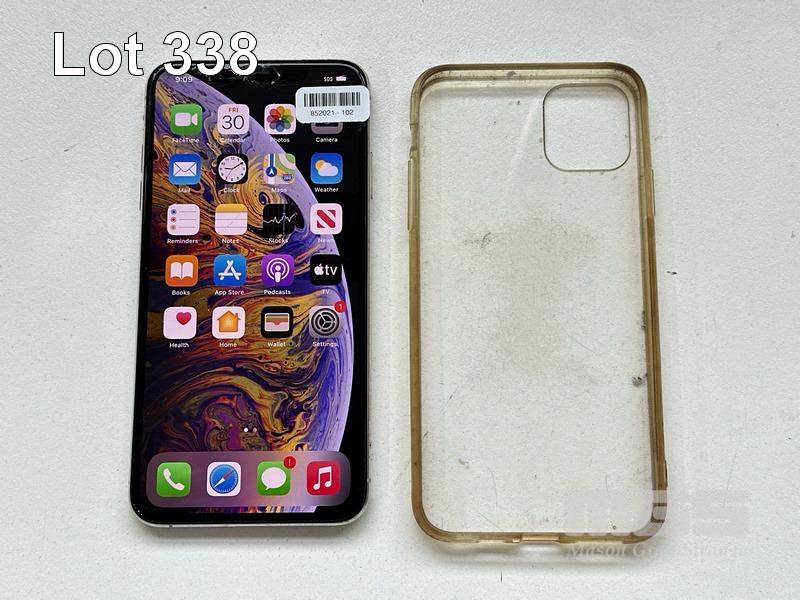 APPLE iPHONE XS MAX, 256GB, SILVER, MODEL MT542X/A, BATTERY HEALTH 81% (NO CABLE, NO CHARGER) (NOTE: DAMAGED SCREEN) S/N:G6TXR8L6KPH5