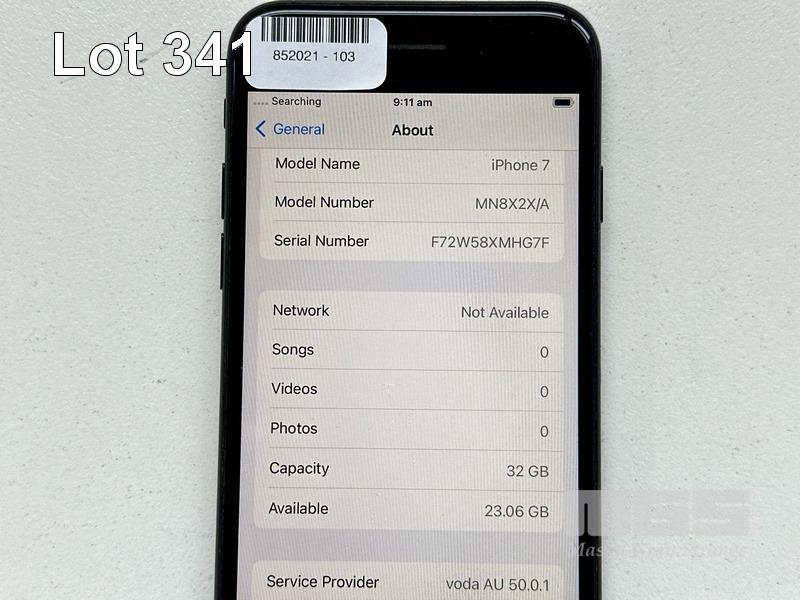 APPLE iPHONE 7, 32GB, BLACK, MODEL MN8X2X/A, BATTERY HEALTH 86% (NO CABLE, NO CHARGER) (NOTE: MINOR SCRATCHES ON SCREEN) S/N:F72W58XMHG7F