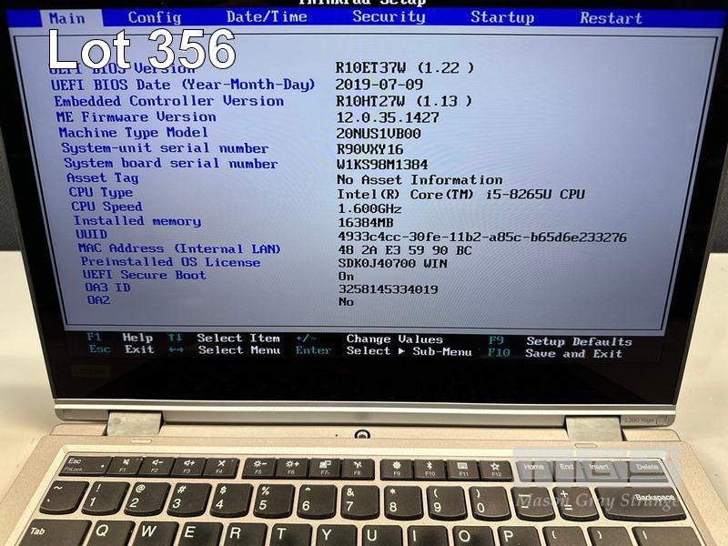 LAPTOP, LENOVO THINKPAD L390 YOGA, TYPE 20NU, CORE i5 8265U (8TH GEN) @ 1.6GHz, 16GB DDR4 RAM, 256GB NVMe M.2 SSD, 13.3" TOUCHSCREEN (1920x1080), INTEL UHD GRAPHICS, Wi-Fi, BLUETOOTH, STYLUS, WINDOWS 11 HOME INSTALLED (NO USB-C POWER SUPPLY) (NOTE: MINOR MARKS ON SCREEN) S/N:R90VXY16