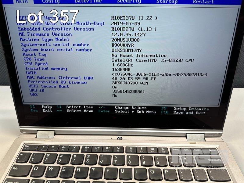 LAPTOP, LENOVO THINKPAD L390 YOGA, TYPE 20NU, CORE i5 8265U (8TH GEN) @ 1.6GHz, 16GB DDR4 RAM, 256GB NVMe M.2 SSD, 13.3" TOUCHSCREEN (1920x1080), INTEL UHD GRAPHICS, Wi-Fi, BLUETOOTH, STYLUS, WINDOWS 11 HOME INSTALLED (NO USB-C POWER SUPPLY) (NOTE: MINOR MARKS ON SCREEN) S/N:R90VXXYR