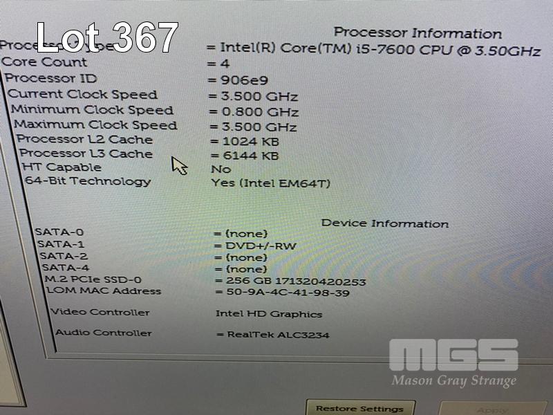 DESKTOP PC, DELL OPTIPLEX 7050 SFF, CORE i5 7600 (7TH GEN) @ 3.5GHz, 8GB DDR4 RAM, 256GB NVMe M.2 SSD, DVD-RW, INTEL HD VIDEO, 9 x USB, 1 x USB-C, WINDOWS 10 PRO INSTALLED (NO KEYBOARD, NO MOUSE) S/N:94W2DK2