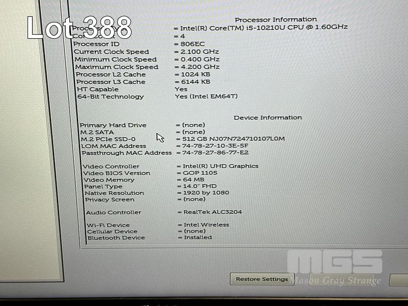 LAPTOP, DELL LATITUDE 5410, CORE i5 10210U (10TH GEN) @ 1.6GHz, 8GB DDR4 RAM, 512GB NVMe M.2 SSD, 14" WIDESCREEN (1920x1080), INTEL UHD GRAPHICS, Wi-Fi, BLUETOOTH, WINDOWS 11 HOME INSTALLED & POWER SUPPLY (NOTE: BATTERY NOT HOLDING CHARGE, MINOR MARKS ON SCREEN) S/N:37DJQ73