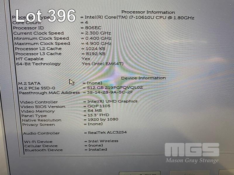LAPTOP, DELL LATITUDE 7310, CORE i7 10610U (10TH GEN) @ 1.8GHz, 16GB DDR4 RAM, 512GB NVMe M.2 SSD, 13.3" WIDESCREEN (1920x1080), INTEL UHD GRAPHICS, Wi-Fi, BLUETOOTH, WINDOWS 11 PRO INSTALLED & USB-C POWER SUPPLY (NOTE: RUBBER PAD PART MISSING ON BOTTOM OF LAPTOP, MARKS ON SCREEN) S/N:DY4P1F3