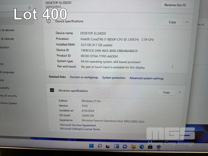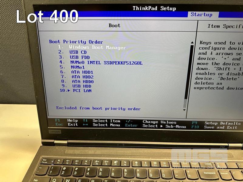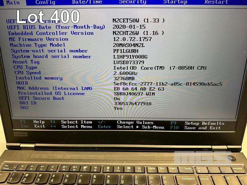 LAPTOP, LENOVO THINKPAD P52 MOBILE WORKSTATION, TYPE 20MA, CORE i7 8850H (8TH GEN) @ 2.6GHz, 32GB DDR4 RAM, 512GB NVMe M.2 SSD, 15.6" WIDESCREEN (1920x1080), 4GB NVIDIA QUADRO P2000 VIDEO, Wi-Fi, BLUETOOTH, WINDOWS 11 PRO INSTALLED (NO POWER SUPPLY) (NOTE: MARKS & SPOT ON SCREEN) S/N:PF1LGURH