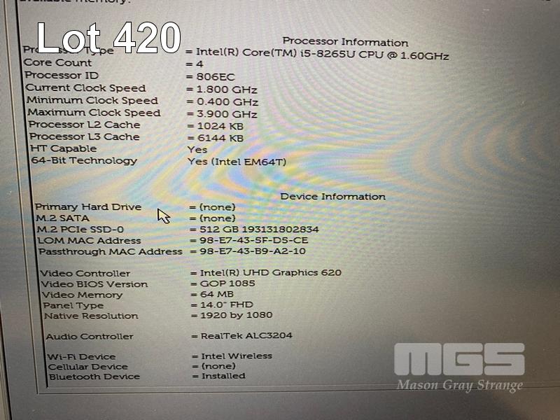 LAPTOP, DELL LATITUDE 5400, CORE i5 8265U (8TH GEN) @ 1.6GHz, 8GB DDR4 RAM, 512GB NVMe M.2 SSD, 14" WIDESCREEN (1920x1080), INTEL UHD GRAPHICS 620, Wi-Fi, BLUETOOTH, WINDOWS 11 HOME INSTALLED & POWER SUPPLY S/N:7X2KZY2