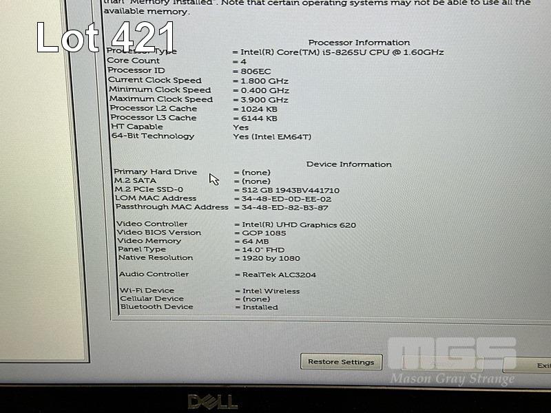 LAPTOP, DELL LATITUDE 5400, CORE i5 8265U (8TH GEN) @ 1.6GHz, 8GB DDR4 RAM, 512GB NVMe M.2 SSD, 14" WIDESCREEN (1920x1080), INTEL UHD GRAPHICS 620, Wi-Fi, BLUETOOTH, WINDOWS 11 HOME INSTALLED & POWER SUPPLY S/N:HNFP4Y2