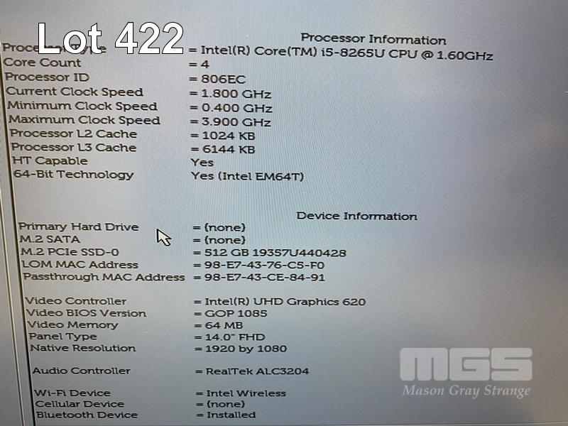 LAPTOP, DELL LATITUDE 5400, CORE i5 8265U (8TH GEN) @ 1.6GHz, 8GB DDR4 RAM, 512GB NVMe M.2 SSD, 14" WIDESCREEN (1920x1080), INTEL UHD GRAPHICS 620, Wi-Fi, BLUETOOTH, WINDOWS 11 HOME INSTALLED & POWER SUPPLY S/N:CDP01Z2