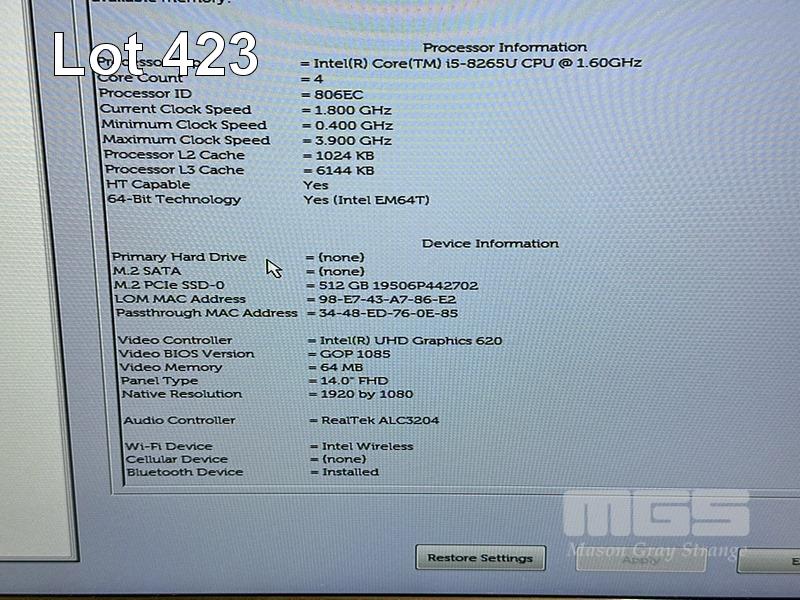 LAPTOP, DELL LATITUDE 5400, CORE i5 8265U (8TH GEN) @ 1.6GHz, 8GB DDR4 RAM, 512GB NVMe M.2 SSD, 14" WIDESCREEN (1920x1080), INTEL UHD GRAPHICS 620, Wi-Fi, BLUETOOTH, WINDOWS 11 HOME INSTALLED & POWER SUPPLY S/N:J5J9P13