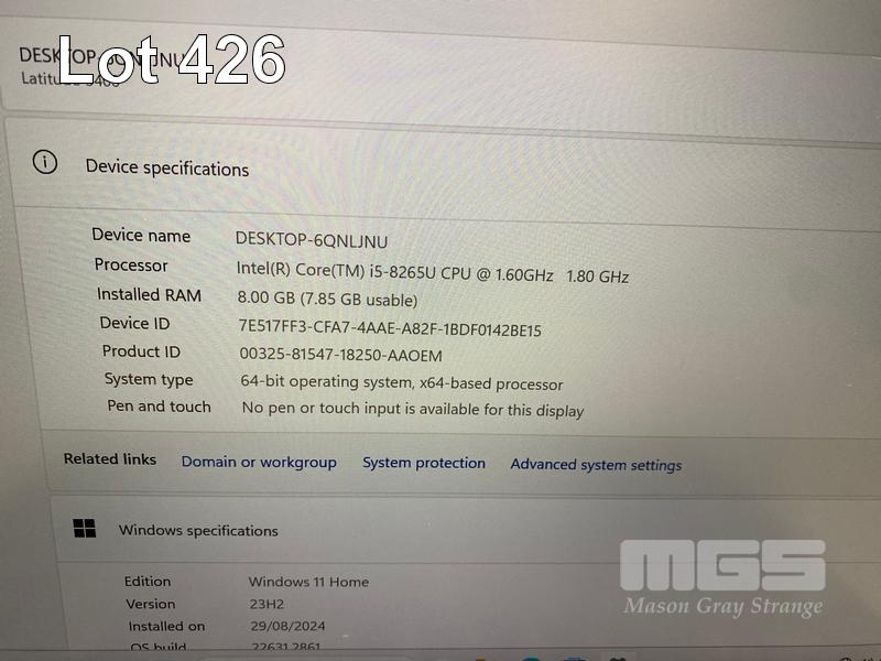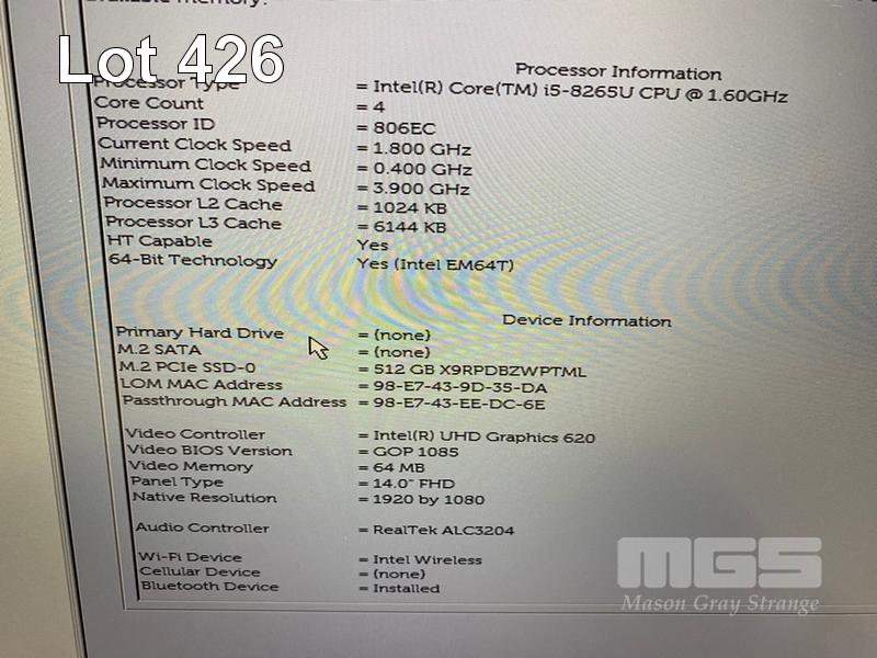 LAPTOP, DELL LATITUDE 5400, CORE i5 8265U (8TH GEN) @ 1.6GHz, 8GB DDR4 RAM, 512GB NVMe M.2 SSD, 14" WIDESCREEN (1920x1080), INTEL UHD GRAPHICS 620, Wi-Fi, BLUETOOTH, WINDOWS 11 HOME INSTALLED & POWER SUPPLY (NOTE: MINOR MARKS ON SCREEN) S/N:DTHBYY2