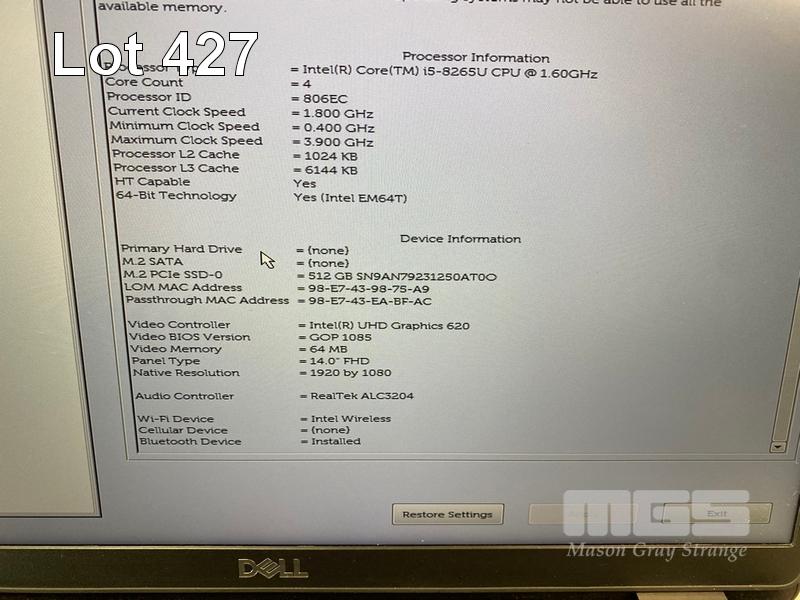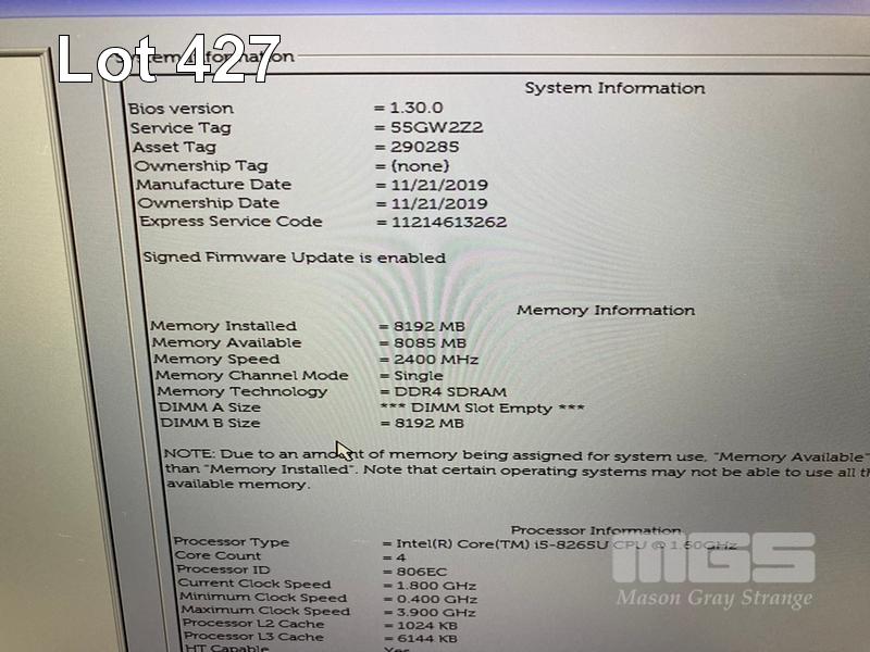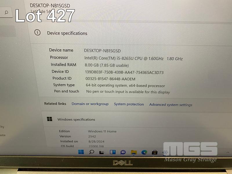 LAPTOP, DELL LATITUDE 5400, CORE i5 8265U (8TH GEN) @ 1.6GHz, 8GB DDR4 RAM, 512GB NVMe M.2 SSD, 14" WIDESCREEN (1920x1080), INTEL UHD GRAPHICS 620, Wi-Fi, BLUETOOTH, WINDOWS 11 HOME INSTALLED & POWER SUPPLY (NOTE: MINOR MARKS ON SCREEN) S/N:55GW2Z2