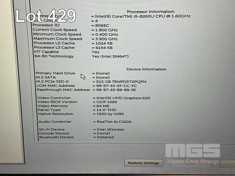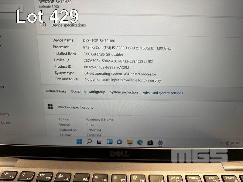 LAPTOP, DELL LATITUDE 5400, CORE i5 8265U (8TH GEN) @ 1.6GHz, 8GB DDR4 RAM, 512GB NVMe M.2 SSD, 14" WIDESCREEN (1920x1080), INTEL UHD GRAPHICS 620, Wi-Fi, BLUETOOTH, WINDOWS 11 HOME INSTALLED & POWER SUPPLY (NOTE: MINOR MARKS ON SCREEN) S/N:GXG32Z2