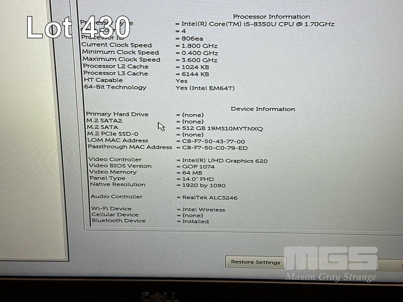 LAPTOP, DELL LATITUDE 5490, CORE i5 8350U (8TH GEN) @ 1.7GHz, 8GB DDR4 RAM, 512GB M.2 SSD, 14" WIDESCREEN (1920x1080), INTEL UHD GRAPHICS 620, Wi-Fi, BLUETOOTH, WINDOWS 11 HOME INSTALLED & POWER SUPPLY