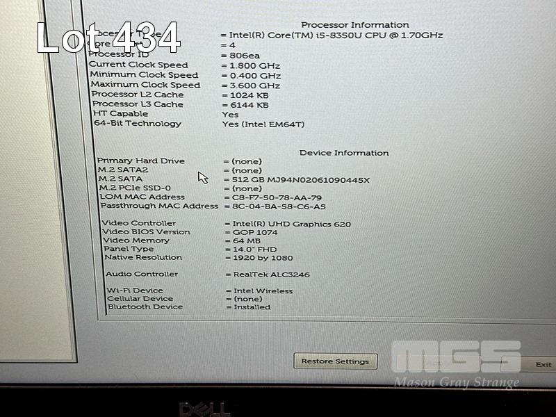 LAPTOP, DELL LATITUDE 5490, CORE i5 8350U (8TH GEN) @ 1.7GHz, 8GB DDR4 RAM, 512GB M.2 SSD, 14" WIDESCREEN (1920x1080), INTEL UHD GRAPHICS 620, Wi-Fi, BLUETOOTH, WINDOWS 11 HOME INSTALLED & POWER SUPPLY S/N:DS62QV2