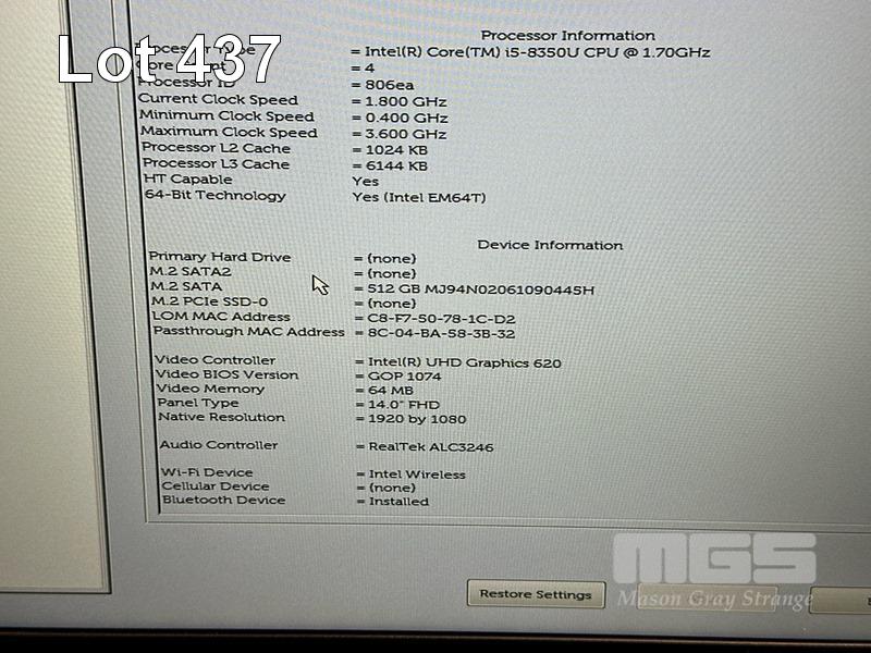 LAPTOP, DELL LATITUDE 5490, CORE i5 8350U (8TH GEN) @ 1.7GHz, 8GB DDR4 RAM, 512GB M.2 SSD, 14" WIDESCREEN (1920x1080), INTEL UHD GRAPHICS 620, Wi-Fi, BLUETOOTH, WINDOWS 11 HOME INSTALLED & POWER SUPPLY S/N:B212QV2