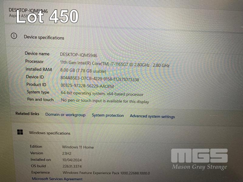 LAPTOP, ACER ASPIRE A515-56G, CORE i7 1165G7 (11TH GEN) @ 2.8GHz, 8GB DDR4 RAM, 1TB SATA HDD, 15.6" WIDESCREEN (1920x1080), 2GB NVIDIA GEFORCE MX350 VIDEO, Wi-Fi, BLUETOOTH, WINDOWS 11 HOME INSTALLED & POWER SUPPLY S/N:NXA1DSA0021231594E3400
