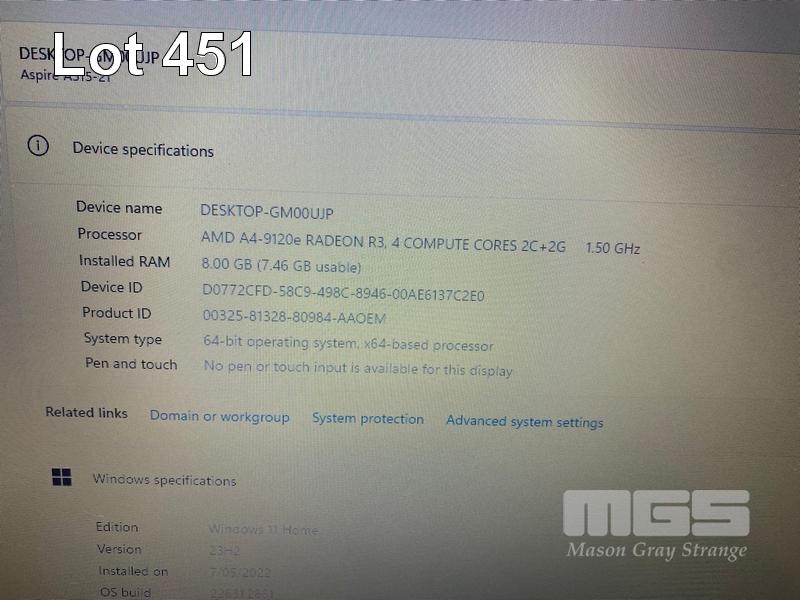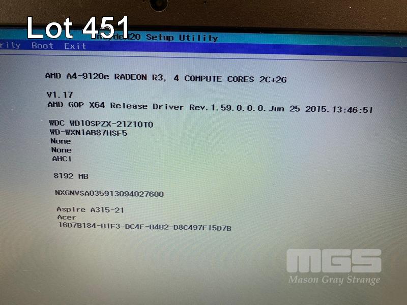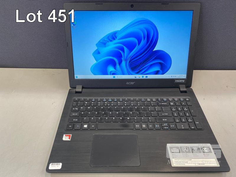 LAPTOP, ACER ASPIRE 3 A315-21-495S, AMD A4-9120e RADEON R3 @ 1.5GHz, 8GB DDR4 RAM, 1TB SATA HDD, 15.6" WIDESCREEN (1366x768), Wi-Fi, BLUETOOTH, WINDOWS 11 HOME INSTALLED & POWER SUPPLY S/N:NXGNVSA035913094027600