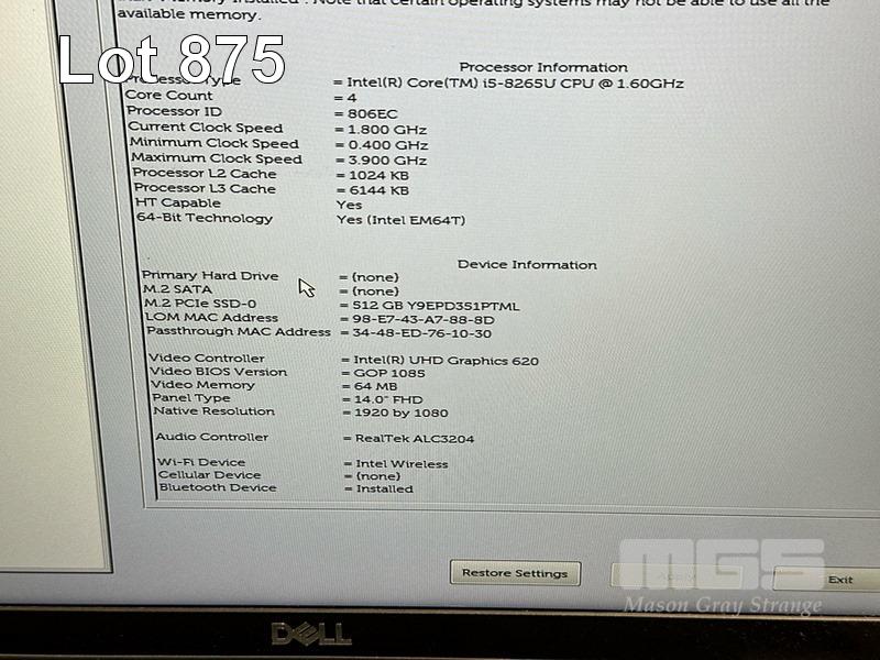 LAPTOP, DELL LATITUDE 5400, CORE i5 8265U (8TH GEN) @ 1.6GHz, 16GB DDR4 RAM, 512GB NVMe M.2 SSD, 14" WIDESCREEN (1920x1080), INTEL UHD GRAPHICS 620, Wi-Fi, BLUETOOTH, WINDOWS 11 HOME INSTALLED & POWER SUPPLY (NOTE: MARKS ON SCREEN) S/N:BZ8G3Z2