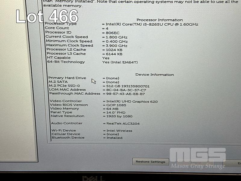 LAPTOP, DELL LATITUDE 5400, CORE i5 8265U (8TH GEN) @ 1.6GHz, 8GB DDR4 RAM, 512GB NVMe M.2 SSD, 14" WIDESCREEN (1920x1080), INTEL UHD GRAPHICS 620, Wi-Fi, BLUETOOTH, WINDOWS 11 HOME INSTALLED & POWER SUPPLY (NOTE: SWOLLEN BATTERY, MINOR MARKS ON SCREEN) S/N:8ZBC2Z2