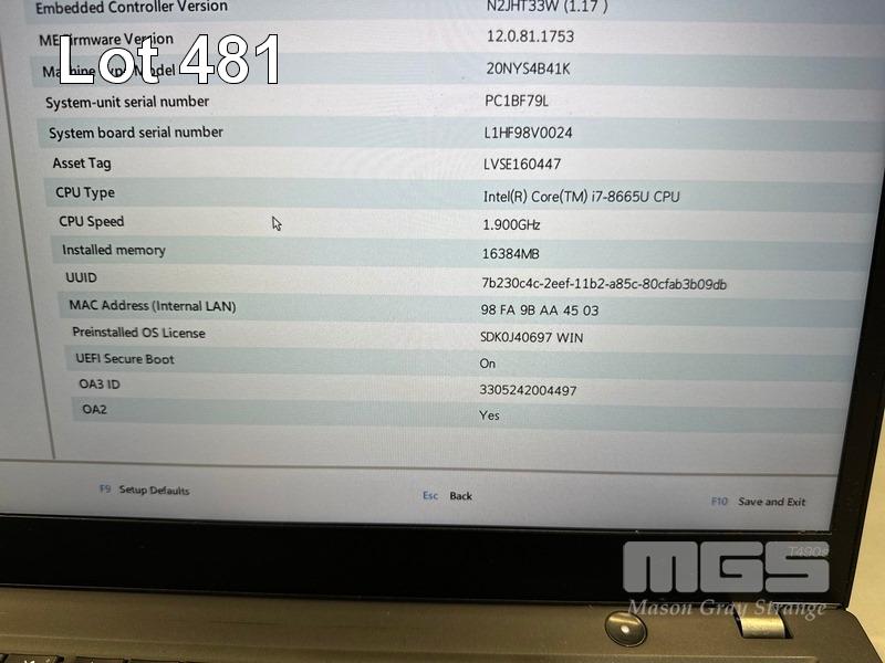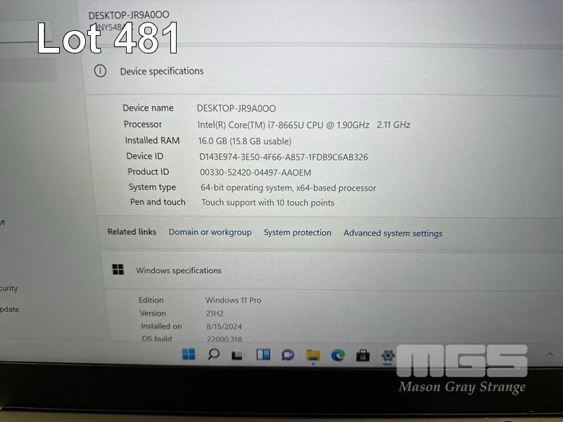 LAPTOP, LENOVO THINKPAD T490s, TYPE 20NY, CORE i7 8665U (8TH GEN) @ 1.9GHz, 16GB DDR4 RAM, 512GB NVMe M.2 SSD, 14" TOUCHSCREEN (1920x1080), INTEL HD VIDEO, Wi-Fi, BLUETOOTH, WINDOWS 11 PRO INSTALLED (NO USB-C POWER SUPPLY) (NOTE: MARKS ON SCREEN) S/N:PC1BF79L