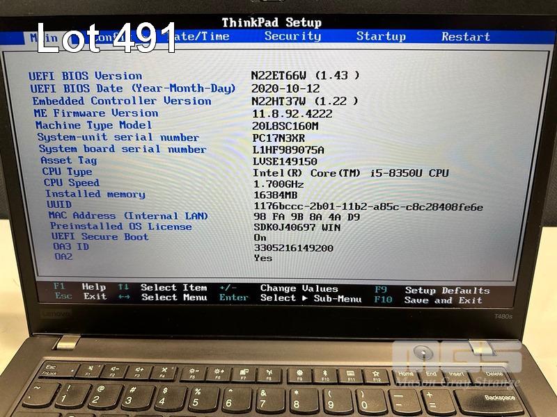LAPTOP, LENOVO THINKPAD T480s, TYPE 20L8, CORE i5 8350U (8TH GEN) @ 1.7GHz, 16GB DDR4 RAM, 256GB NVMe M.2 SSD, 14" TOUCHSCREEN (1920x1080), INTEL HD VIDEO, Wi-Fi, BLUETOOTH, WINDOWS 11 PRO INSTALLED (NO USB-C POWER SUPPLY (NOTE: MINOR MARKS ON SCREEN) S/N:PC17N3XR
