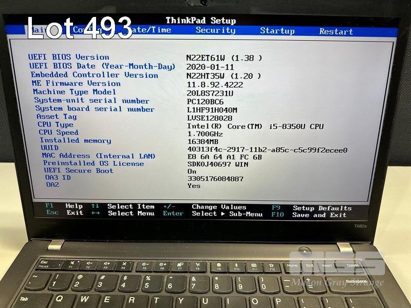 LAPTOP, LENOVO THINKPAD T480s, TYPE 20L8, CORE i5 8350U (8TH GEN) @ 1.7GHz, 16GB DDR4 RAM, 256GB NVMe M.2 SSD, 14" TOUCHSCREEN (1920x1080), INTEL HD VIDEO, Wi-Fi, BLUETOOTH, WINDOWS 11 PRO INSTALLED (NO USB-C POWER SUPPLY (NOTE: MARKS ON SCREEN) S/N:PC120BC6